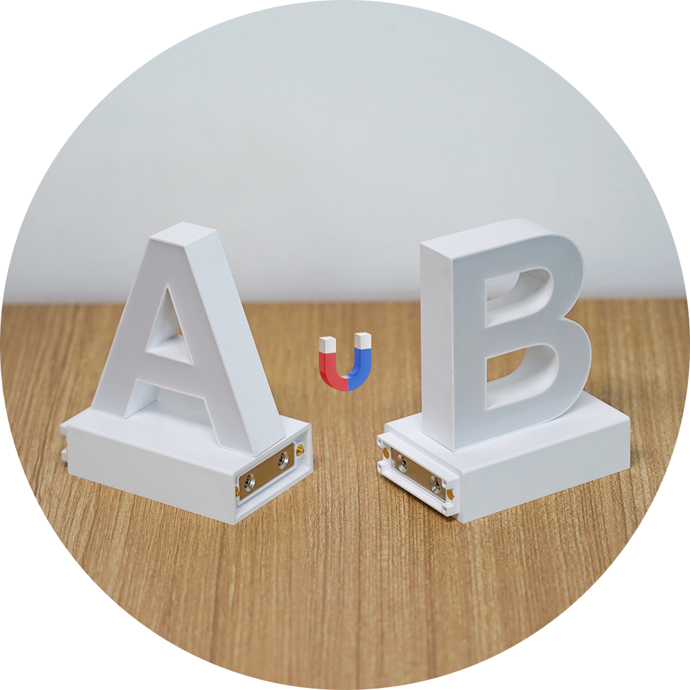 2. Conecte a luz magnética da letra à fonte de alimentação.